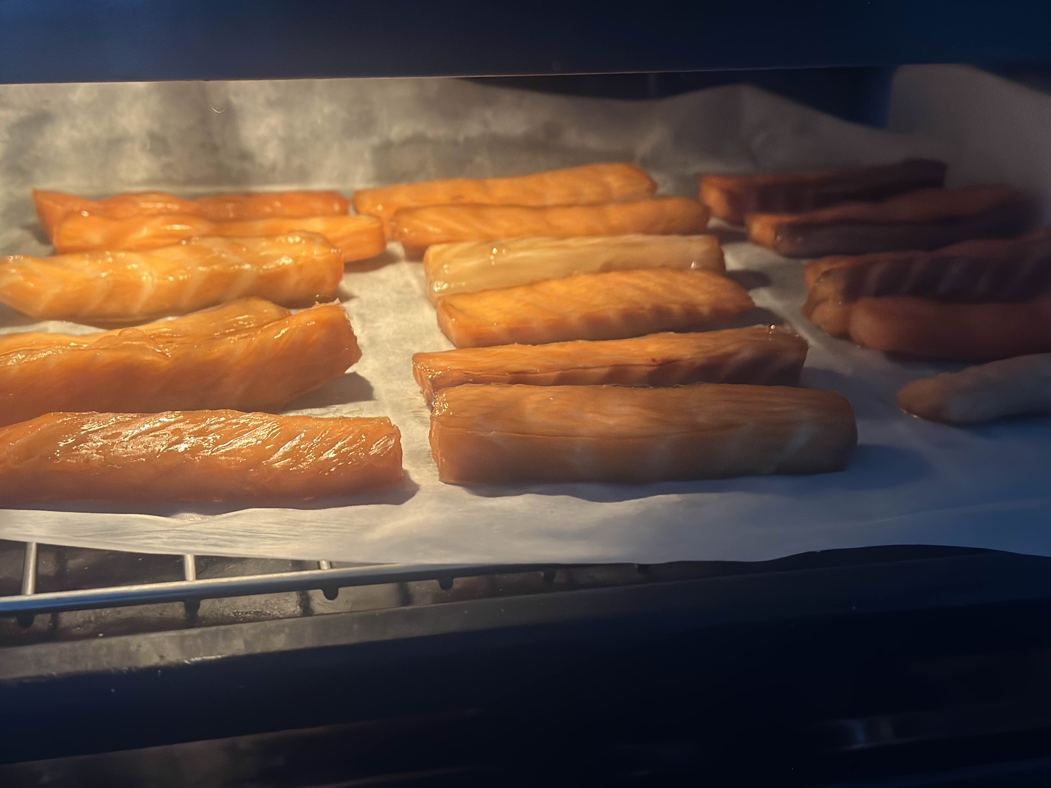 - 연어는 건조되는 동안 기름이 많이 올라오기 때문에