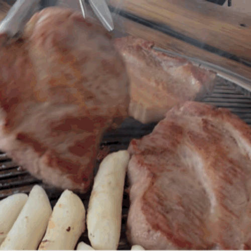 잠시 후 숯불 위에 올라온 두툼한 고기에서
