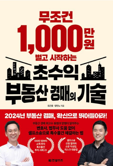《무조건 1,000만 원 벌고 시작하는 초수익 부동산 경매의 기술》은 단순한 이론서가 아니라 실전에서 수익을 만드는 경매 투자 매뉴얼이다. 낙찰 이후 수익을 실현하는 능력, 그리고 그 과정에서 협상의 주도권을 잡을 수 있는 셀프소송 기술은 초보 투자자의 필수 역량이 되고 있다.